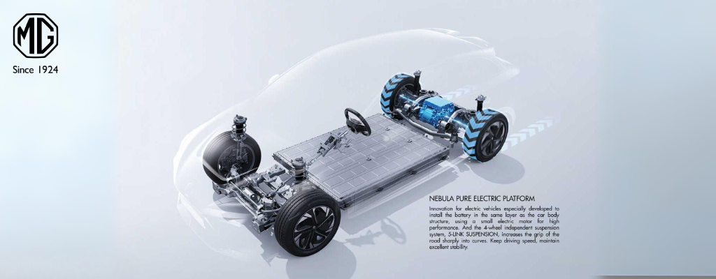 The first ever the design is meticulously developed specifically for electric vehicles. with driving power from the system rear-wheel drive in EV cars that come with the innovation of NEBULA PURE ELECTRIC PLATFORM born to be a new standard for EVs.
